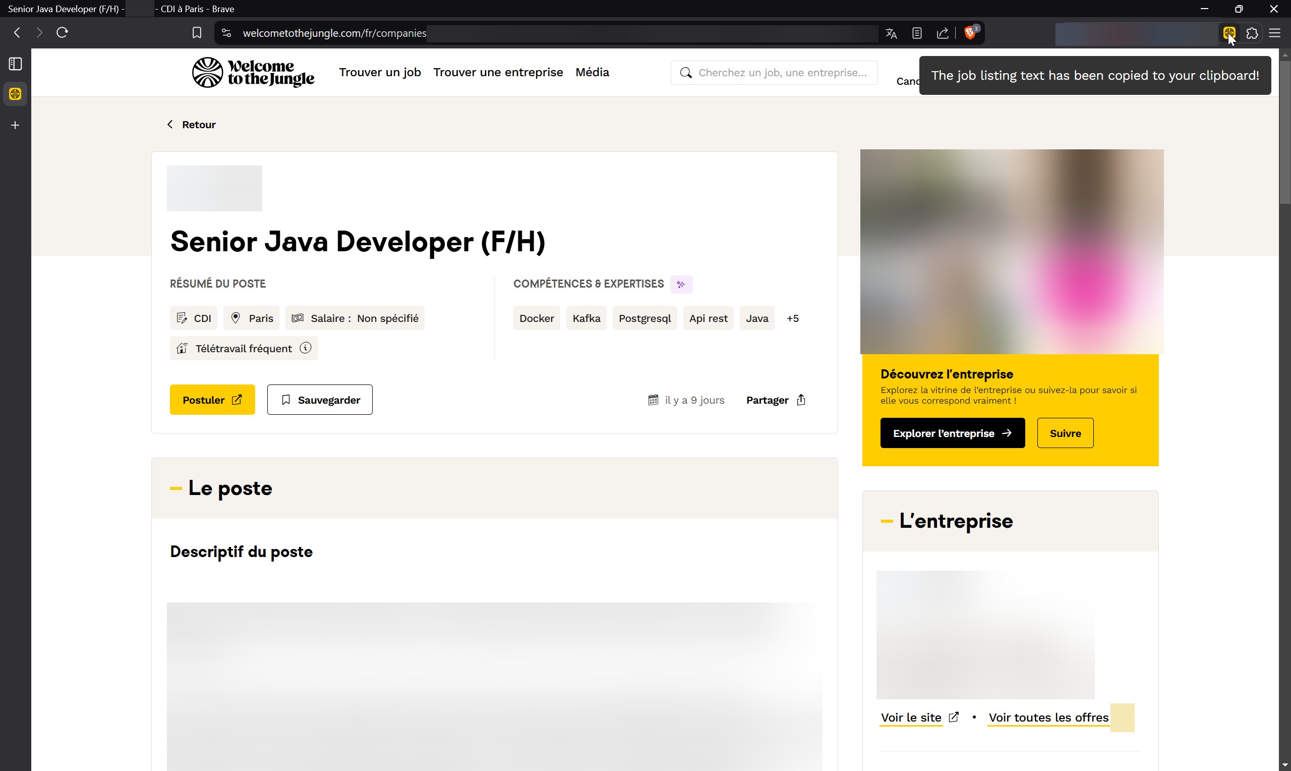 JungleJob Extractor is a browser extension designed to streamline the extraction of job listing details from Welcome To The Jungle job pages. This tool effortlessly gathers essential information and copies it to your clipboard, saving valuable time for job seekers and recruiters alike.