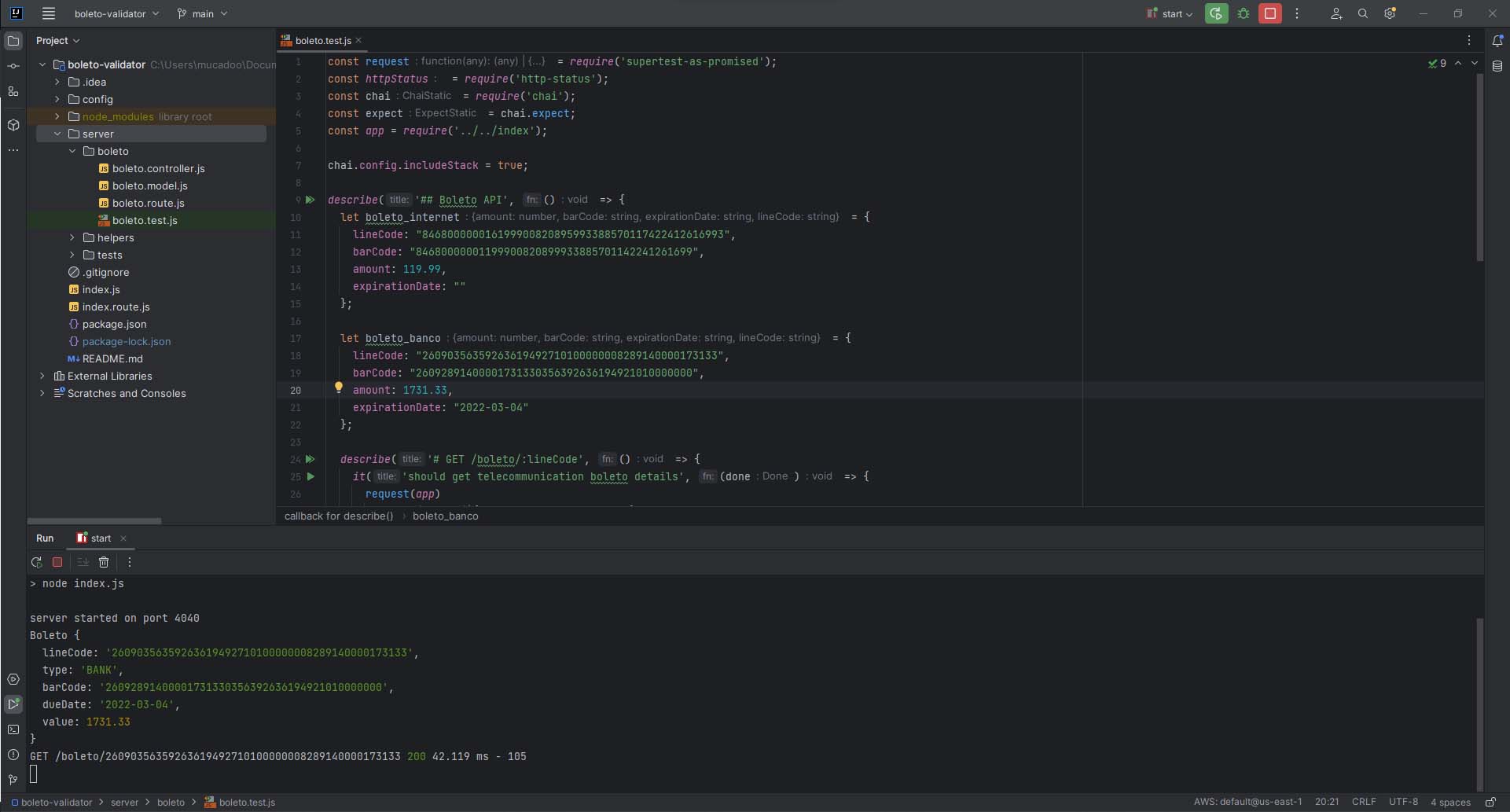 API completa che valida ed estrae dettagli dai bollettini di pagamento brasiliani (boleto), inclusi codici a barre, importi e date di scadenza. Integra regole di validazione Joi personalizzate e algoritmi (Mod10/Mod11) per conformità agli standard Boleto. I test integrati garantiscono stabilità e accuratezza per il processo end-to-end.
